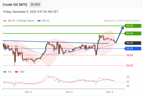 在 59.20 之上,看涨,目标价位为 60.00 ,然后为 60.40 。