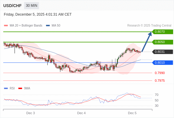 在 0.8010 之上,看涨,目标价位为 0.8050 ,然后为 0.8070 。