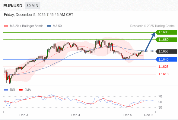 在 1.1640 之上,看涨,目标价位为 1.1680 ,然后为 1.1695 。