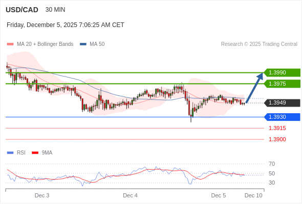 在 1.3930 之上,看涨,目标价位为 1.3975 ,然后为 1.3990 。