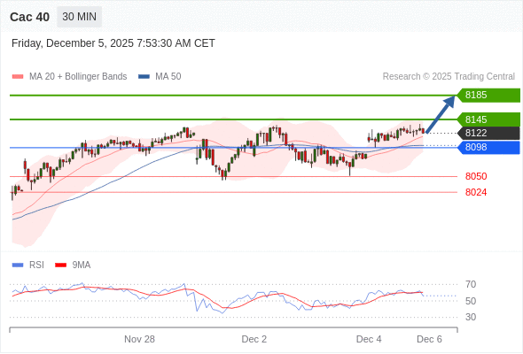 Cac 40 当日内: 在8098之上,看涨。