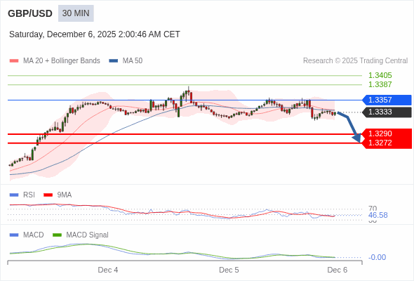 英镑/美元 当日内 : 看跌,在 1.3357 之下。