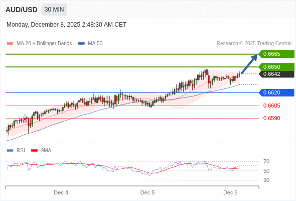 在 0.6620 之上,看涨,目标价位为 0.6650 ,然后为 0.6665 。