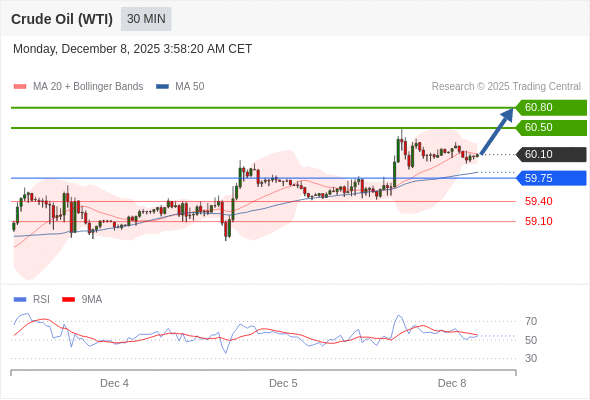 在 59.75 之上,看涨,目标价位为 60.50 ,然后为 60.80 。
