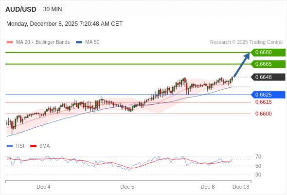 在 0.6625 之上,看涨,目标价位为 0.6665 ,然后为 0.6680 。
