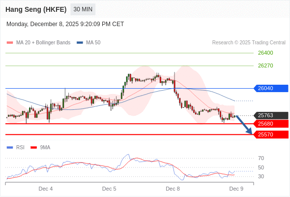 在 26040 之下,看跌,目标价位为 25680 ,然后为 25570 。