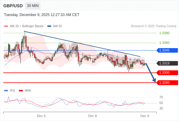 英镑/美元 当日内: 朝1.3300运行。