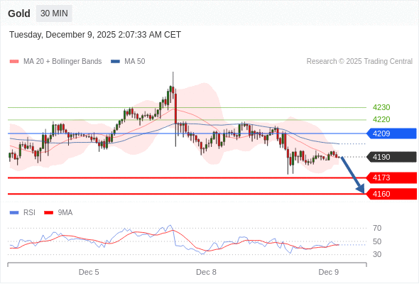 在 4209 之下,看跌,目标价位为 4173 ,然后为 4160 。