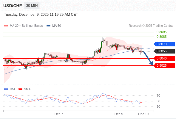 在 0.8070 之下,看跌,目标价位为 0.8040 ,然后为 0.8025 。