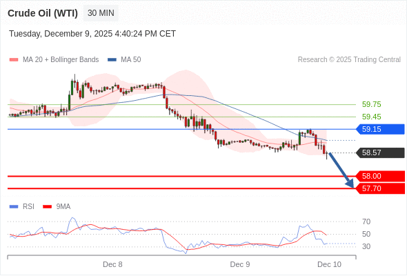 在 59.15 之下,看跌,目标价位为 58.00 ,然后为 57.70 。