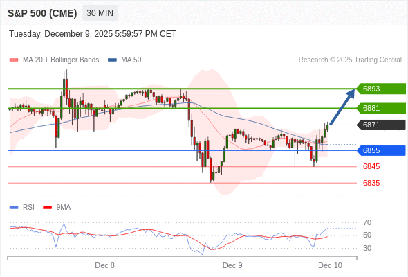 在 6855 之上,看涨,目标价位为 6881 ,然后为 6893 。