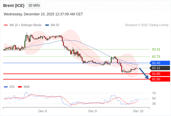 在 62.40 之下,看跌,目标价位为 61.80 ,然后为 61.50 。