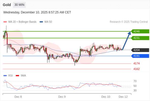 在 4191 之上,看涨,目标价位为 4231 ,然后为 4246 。