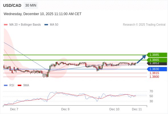 在 1.3830 之上,看涨,目标价位为 1.3865 ,然后为 1.3885 。