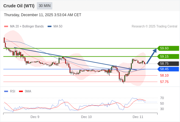 在 58.45 之上,看涨,目标价位为 59.15 ,然后为 59.60 。