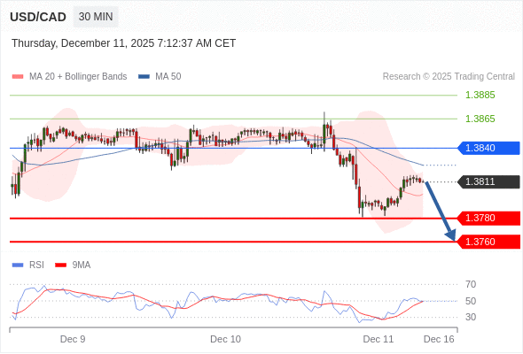 在 1.3840 之下,看跌,目标价位为 1.3780 ,然后为 1.3760 。