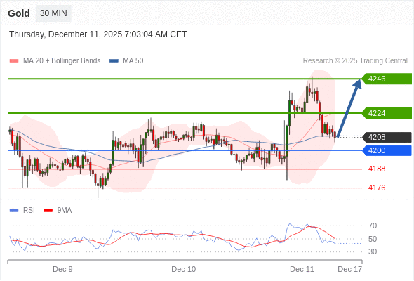 在 4200 之上,看涨,目标价位为 4224 ,然后为 4246 。