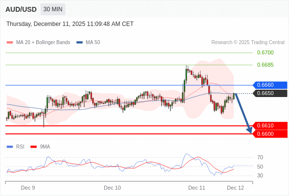 交易策略: 在 0.6660 之下,看跌,目标价位为 0.6610 ,然后为 0.6600 。