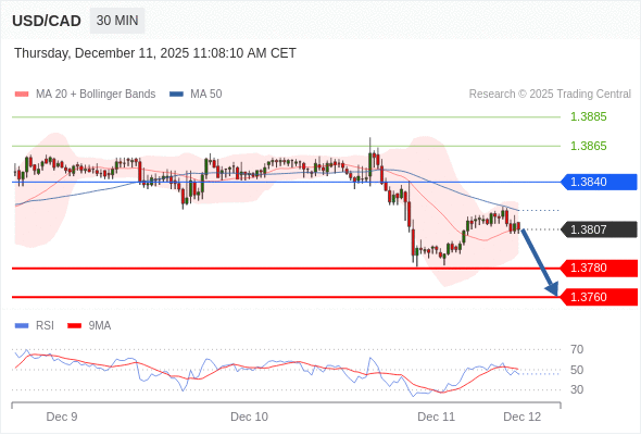 在 1.3840 之下,看跌,目标价位为 1.3780 ,然后为 1.3760 。