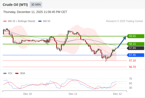 在 57.45 之上,看涨,目标价位为 58.15 ,然后为 58.65 。