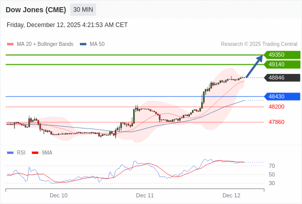 在 48430 之上,看涨,目标价位为 49140 ,然后为 49350 。