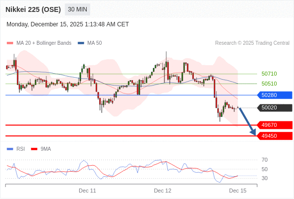 在 50280 之下,看跌,目标价位为 49670 ,然后为 49450 。