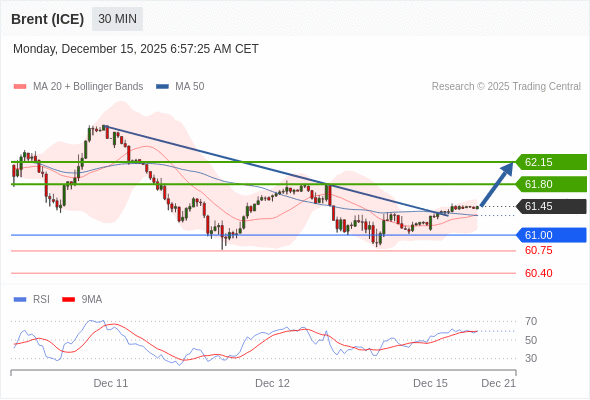 在 61.00 之上,看涨,目标价位为 61.80 ,然后为 62.15 。