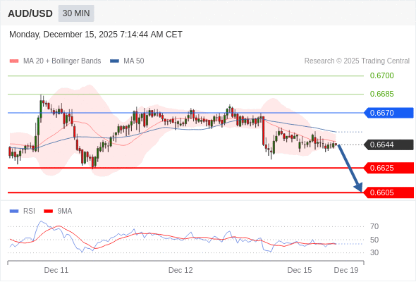 在 0.6670 之下,看跌,目标价位为 0.6625 ,然后为 0.6605 。