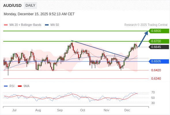 交易策略: 在 0.6505 之上,看涨,目标价位为 0.6700 ,然后为 0.6800 。