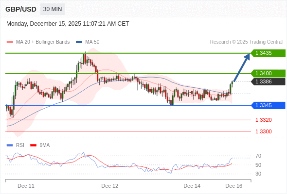 在 1.3345 之上,看涨,目标价位为 1.3400 ,然后为 1.3435 。