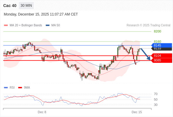 在 8145 之下,看跌,目标价位为 8104 ,然后为 8085 。