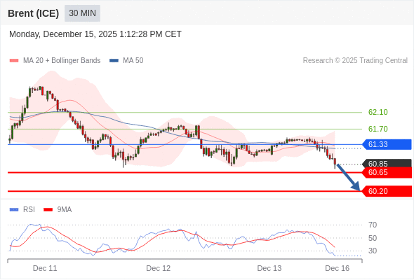 在 61.33 之下,看跌,目标价位为 60.65 ,然后为 60.20 。