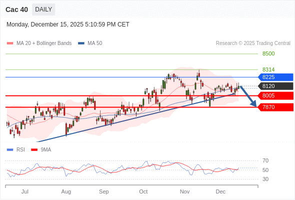 Cac 40 短线: 短期调整。