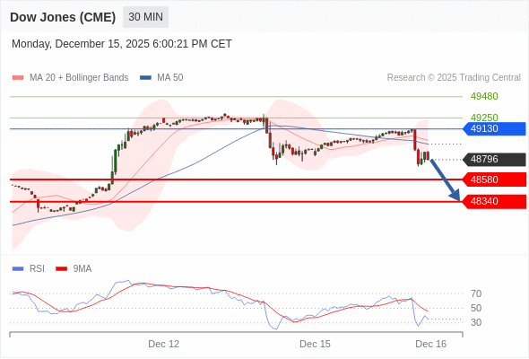 在 49130 之下,看跌,目标价位为 48580 ,然后为 48340 。