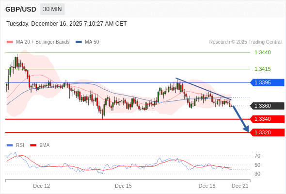 在 1.3395 之下,看跌,目标价位为 1.3340 ,然后为 1.3320 。