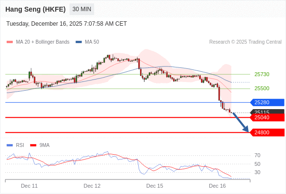 在 25280 之下,看跌,目标价位为 25040 ,然后为 24800 。