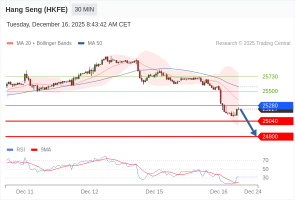 香港恒生指数期货 当日内: 短期关键阻力位在25280。