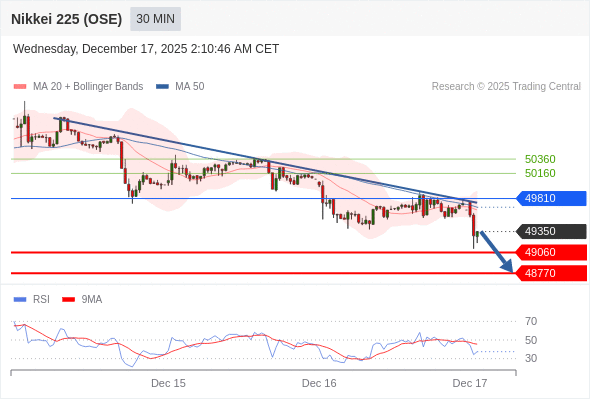 在 49810 之下,看跌,目标价位为 49060 ,然后为 48770 。