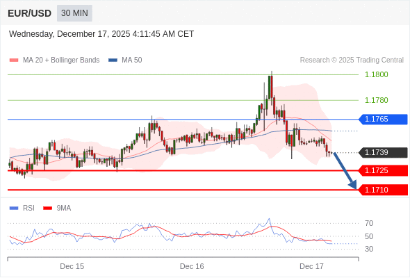 在 1.1765 之下,看跌,目标价位为 1.1725 ,然后为 1.1710 。