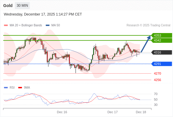 在 4291 之上,看涨,目标价位为 4342 ,然后为 4353 。