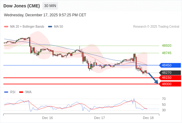 在 48450 之下,看跌,目标价位为 48150 ,然后为 48000 。