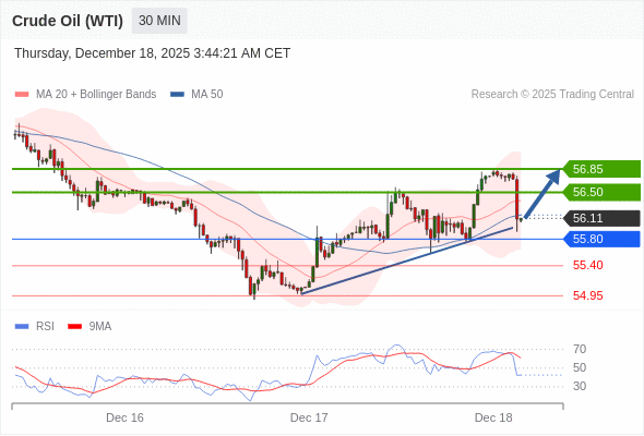 在 55.80 之上,看涨,目标价位为 56.50 ,然后为 56.85 。