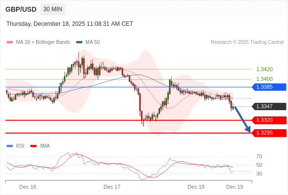 在 1.3385 之下,看跌,目标价位为 1.3320 ,然后为 1.3295 。