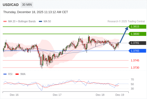 在 1.3765 之上,看涨,目标价位为 1.3800 ,然后为 1.3815 。