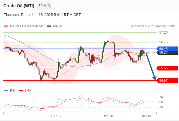 在 56.45 之下,看跌,目标价位为 55.55 ,然后为 54.97 。