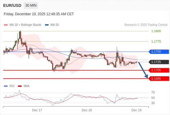 在 1.1750 之下,看跌,目标价位为 1.1705 ,然后为 1.1685 。