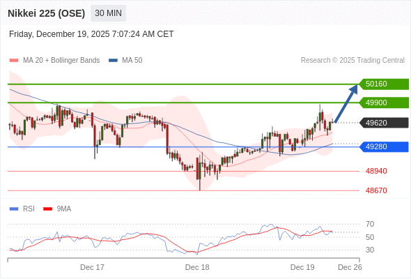 日经225股指期货 (OSE) 当日内: 在49280之上,看涨。