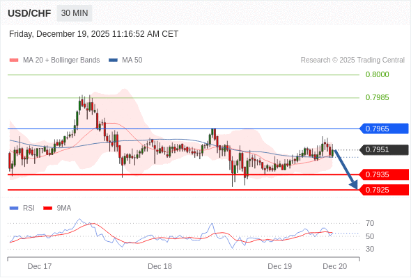 在 0.7965 之下,看跌,目标价位为 0.7935 ,然后为 0.7925 。