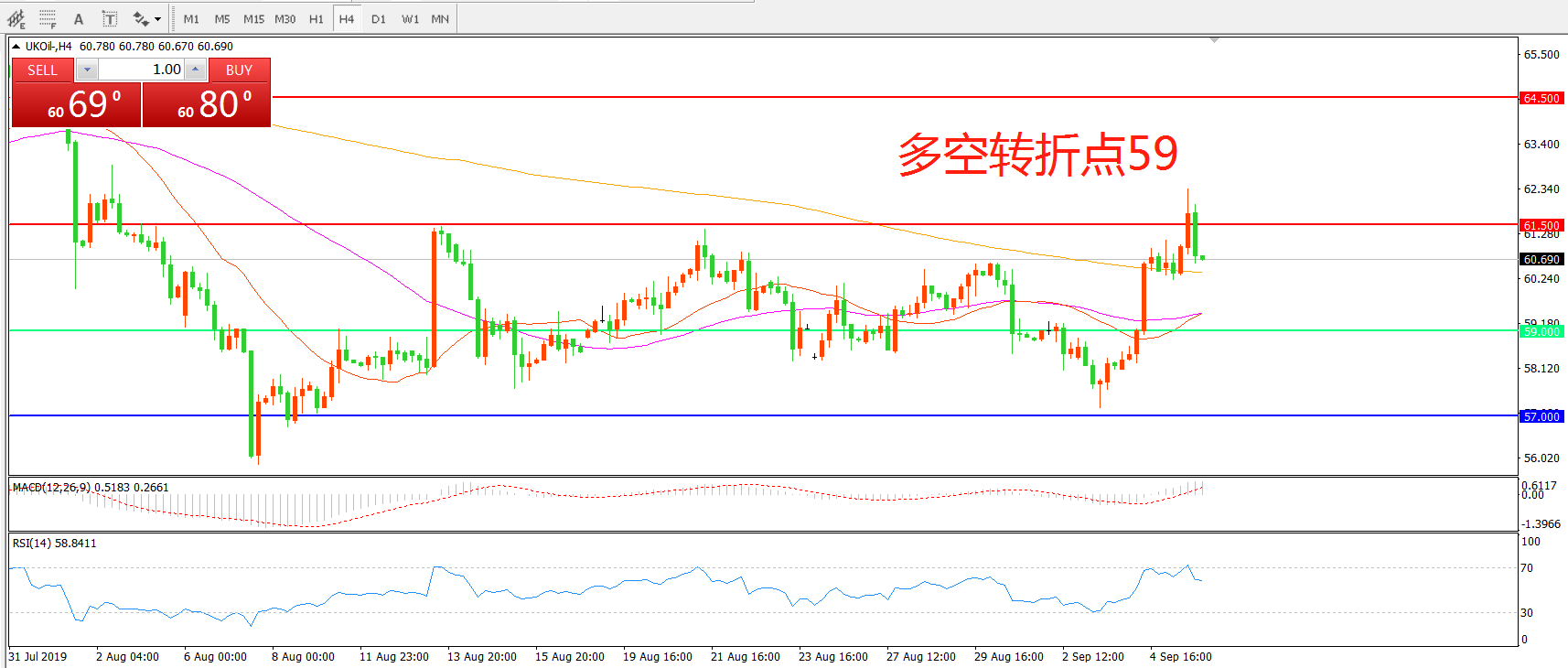 交易策略:在59.00之上看涨,目标61.50 64.50