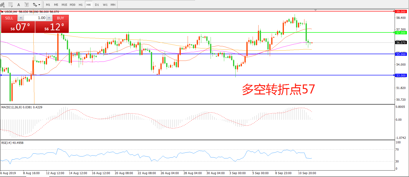 美国能源信息署(EIA)周三(9月11日)公布报告显示,截至9月6日当周,美国原油库存减少691.2万桶至4.161亿桶,远高于预期的减少248.8万桶,利好油价。但石油输出国组织(OPEC)周三公布最新月报显示,连续两个月下调原油需求增长预期且美国总统特朗普考虑放宽对伊朗制裁的消息令原油供应有望上升,这令美油掉头大跌,最终收报56.06美元/桶。